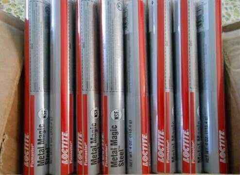鋼粉的棒狀環(huán)氧膠,用手揉勻后填入間隙或孔洞即可堵漏,適用時間3分鐘,初固 時間為10分鐘。固化后可以進(jìn)行鉆孔、攻絲、涂油漆。適用于水箱及管道泄露的緊 急密封修補(bǔ),可用于鋼鐵材料壓力低于0.3MPa工況下堵漏。能夠?qū)缚p進(jìn)行平填; 對鑄件的小開裂進(jìn)行修補(bǔ)。對過大的螺栓孔進(jìn)行填充。