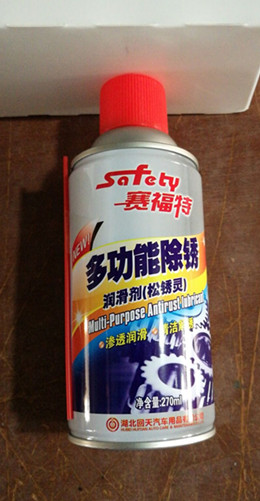 賽福特牌多功能除銹潤(rùn)滑劑是采用美國(guó)配方研制而成的環(huán)保型產(chǎn)品。本品具有滲透潤(rùn)滑、清潔解銹、清除濕氣、消除噪音、抑/制腐蝕及金屬防銹保護(hù)等性能。良好的滲透解銹潤(rùn)滑效果,可迅速松拆因銹蝕而卡住的螺栓、機(jī)械軸及生產(chǎn)線其它機(jī)部件;因其快捷、有效的用途而已成為汽車護(hù)理、修理廠等必/備佳品。綠色產(chǎn)品,可靠,全新無鉛、無氯、無氟里昂綠色環(huán)保配方,對(duì)機(jī)部件無任何影響,是綠色除銹松動(dòng)潤(rùn)滑劑。