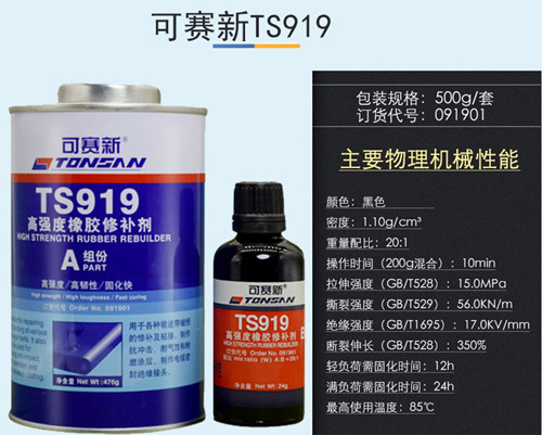 10、可賽新TS919橡膠修補劑用于各種運輸帶接頭的封口、橡膠破損的修補、耐磨橡膠涂層及絕緣灌封。